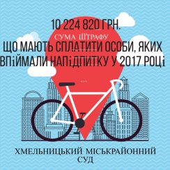 Як наслідок, сукупний розмір штрафу, що накладений суддями Хмельницького міськрайонного суду на осіб, яких визнано винними у скоєнні правопорушення, передбаченого ст. 130 КУпАП протягом 2017 року складає 10 224 820 грн. і лише 2 499 020 грн. з вказаної суми сплачено правопорушниками добровільно.