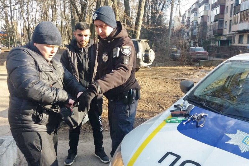 Під час перевірки несення служби з охорони будівлі Октябрського районного суду міста Полтави офіцер Територіального управління Служби у Полтавській області старший лейтенант Служби судової охорони Геворг Геворгян звернув увагу на двох невідомих підозрілих чоловіків, які знаходилися поруч з будівлею суду.