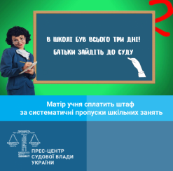 До адміністративної відповідальності притягнуто матір учня за систематичні пропуски шкільних занять